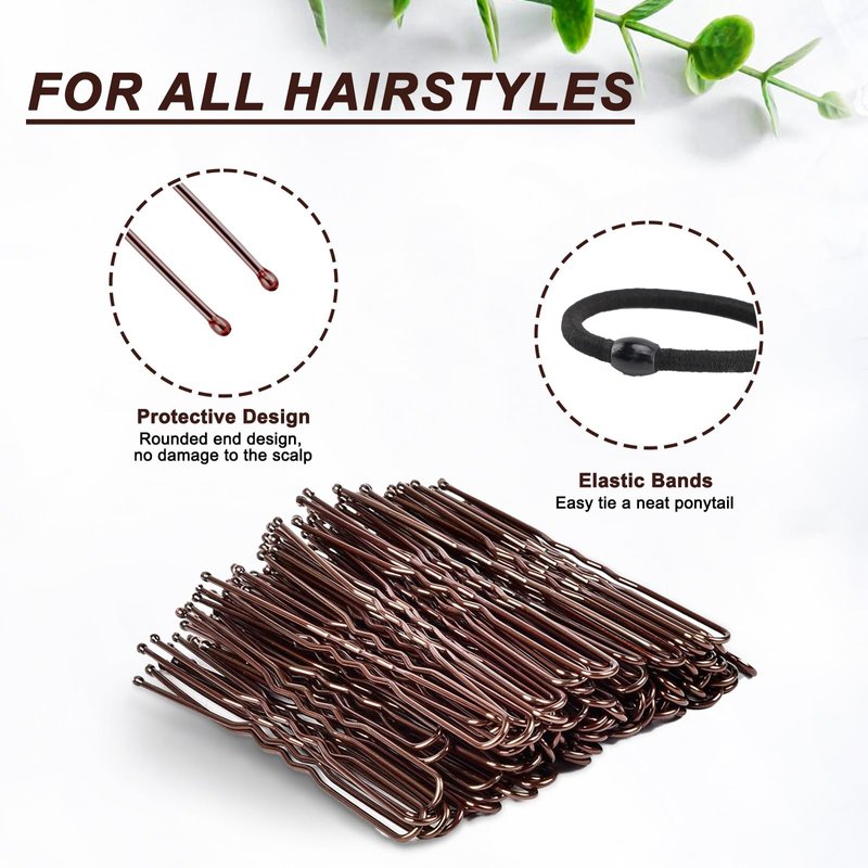 - Quantity: 100 x Hair nets, 20 x U Shaped hair pins, 5 x Hair bands