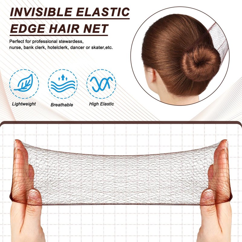 - 【High Quality Hairnet】The hair nets for bun is made of high quality nylon material, lightweight and soft. Which can be stretched up to 50cm, large enough to put your long hair and convenient for you to wear. Easily hold your hair in place while working or dancing for whole day.