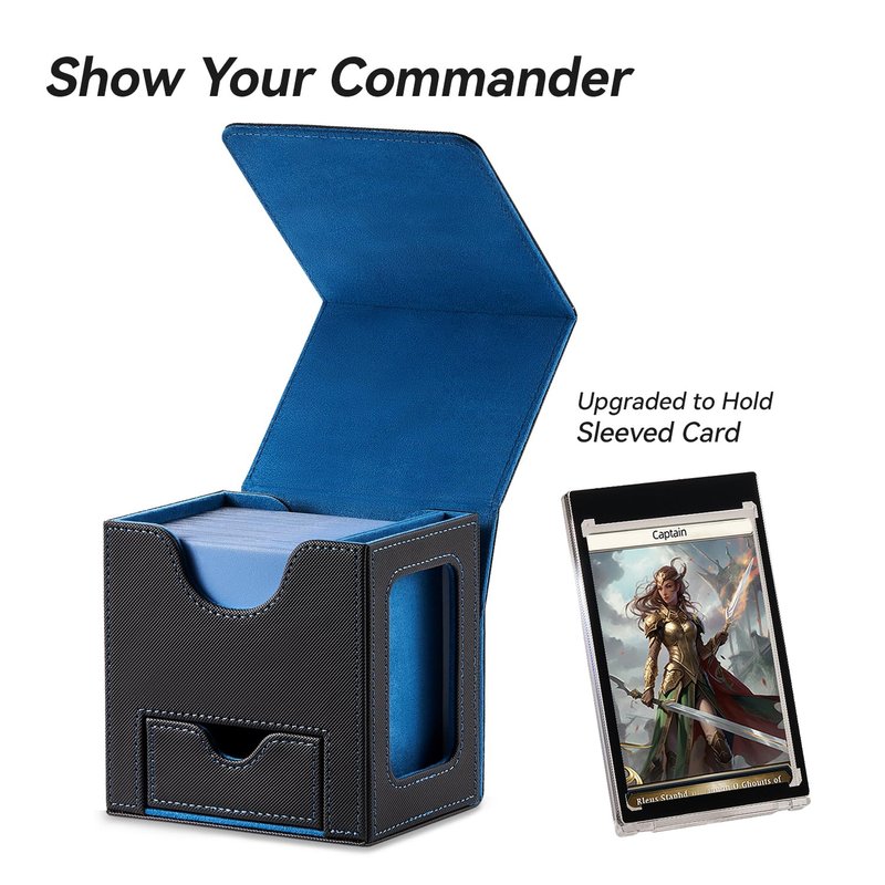 - ⭐【The Ultimate Commander Solution】Crafted with Commander EDH players in mind, our innovative design is tailor-made for your Commander deck. Safely stow your Commander card in the included 35pt card holder, complete with a card brick to prevent accidental shuffling into your deck. Showcase your Commander proudly in the dedicated slot.