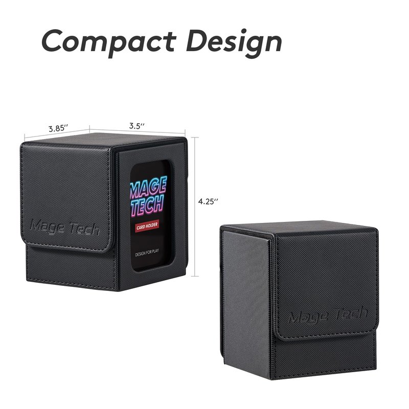 - [𝗖𝗼𝗺𝗽𝗮𝗰𝘁 𝗮𝗻𝗱 𝗖𝗼𝗺𝗽𝗮𝘁𝗶𝗯𝗹𝗲] With dimensions of 4.2"H x 3.45"L x 3.85"D, this deck box fits over 100 single-sleeved, 75+ double-sleeved, or 60+ triple-sleeved cards, tested with Dragon Shield sleeves. It's also tailored to snugly fit the Gamegenic Dungeon S 550+ carrying case, ensuring secure and easy transport.