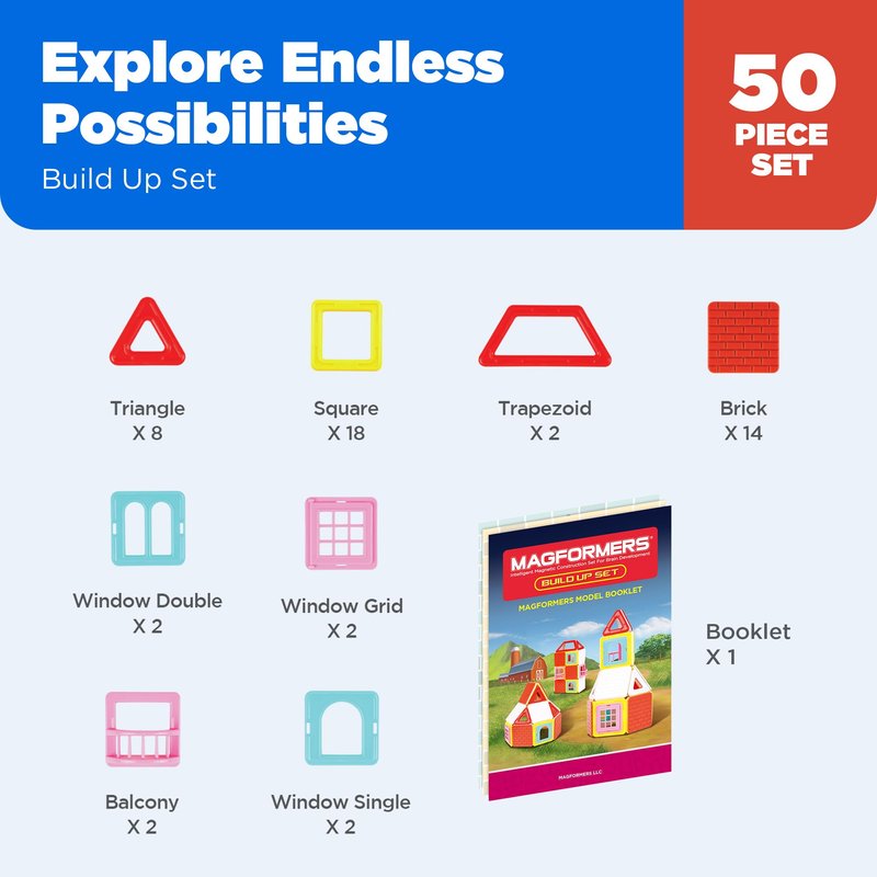 Magformers Build Up (50 Piece) Set Magnetic Building Blocks, Educational Magnetic Tiles Kit , Magnetic Construction STEM Toy Set includes brick accessories