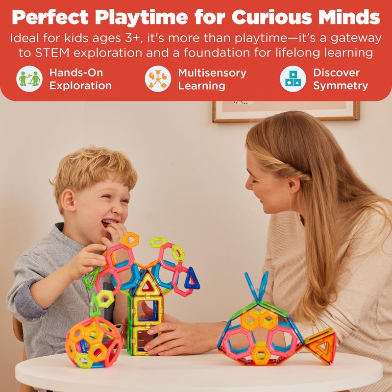 - PERFECT FOR GROWING MINDS: Watch young minds flourish as they explore, create and experiment with possibilities. These magnetic building tiles for kids boost self-esteem and encourage independent thinking by bringing creations to life in imaginative play.