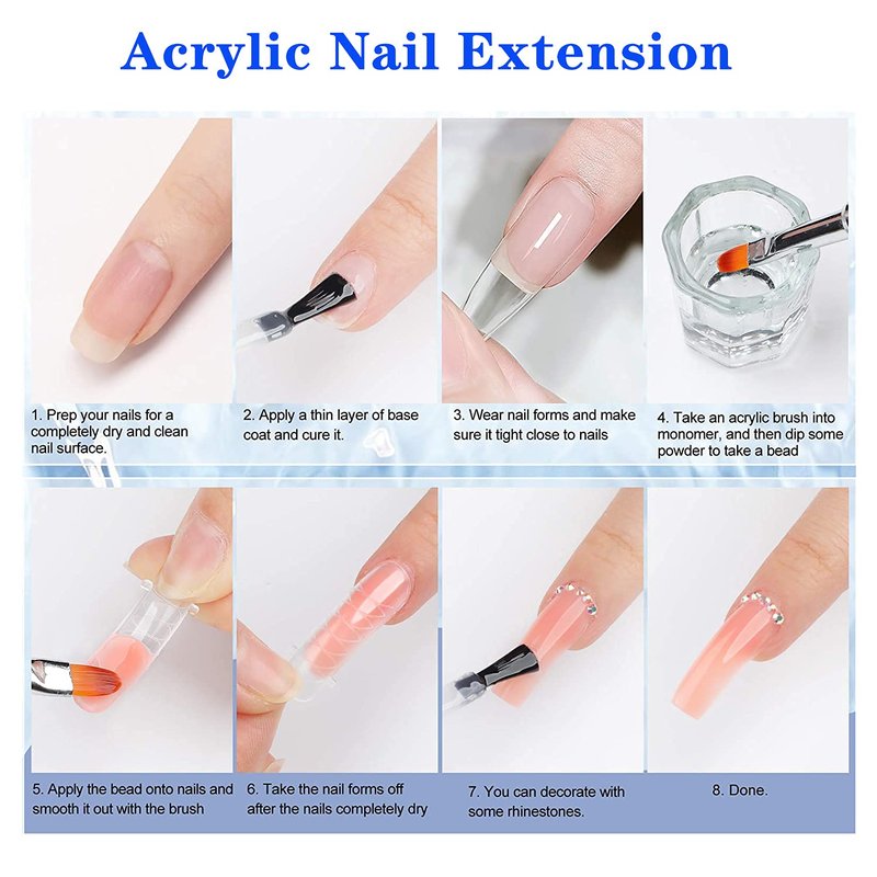 - ❤️ [Quick drying time] The drying time of the liquid acrylic monomer is 3-5 minutes. Before the nails harden, there is enough time to lengthen the nails and place the nail accessories, cover the nails with acrylic powder (not included) or style them.