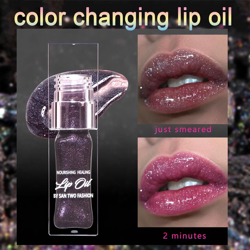 Magic Color Changing Lip Oil Temperature Change Lip Glow Oil Moisturizing Plumping Lip Gloss, No-Sticky Transparent Lip Care Tinted Lip Gloss Oil (Clear Shimmer+Black)