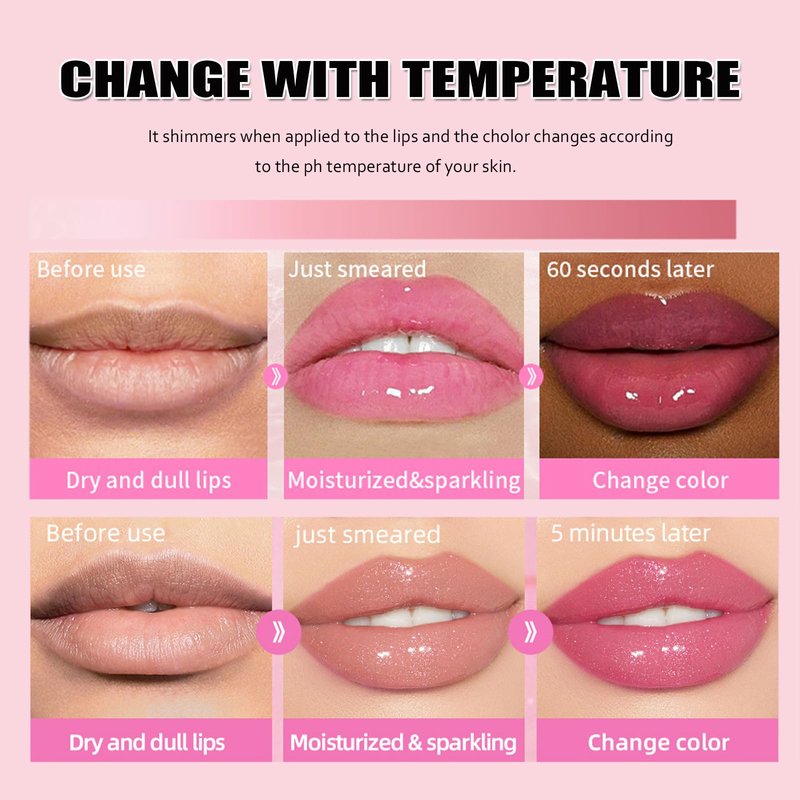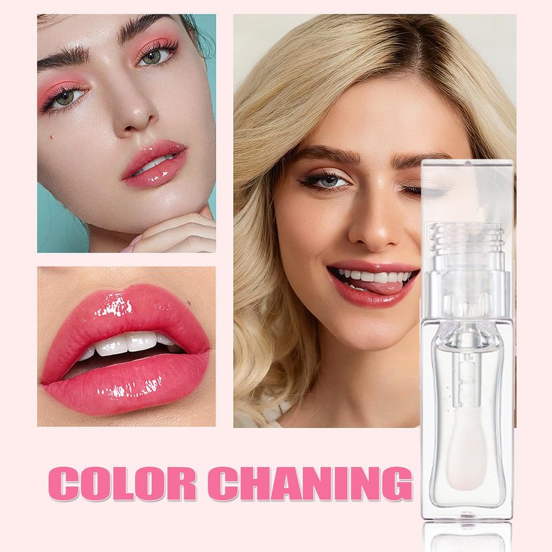 Magic Color Changing Lip Oil Temperature Change Lip Glow Oil Plumping Glimmer Lip Gloss, Moisturizing No-Sticky Gloss Transparent Lip Balm Lip Care, Tinted Lip Gloss Clear Natural Makeup