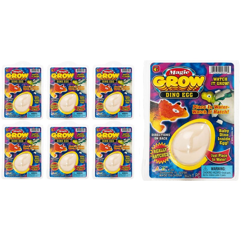 - 6 Pack of Magic Grow Hatching Dinosaur Eggs - Each egg has a surprise dinosaur hiding inside, just put it into a bowl of cold water and let it hatch and grow. Assorted dinosaur (T-rex, Triceratops, Stegosaurus, and Raptor).