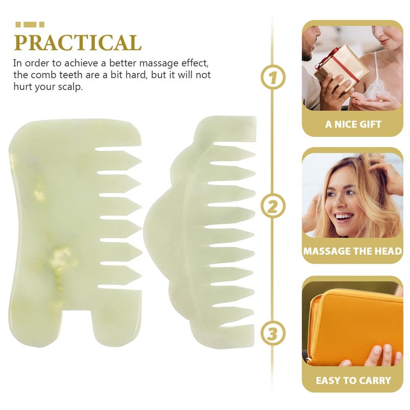 MAGICLULU 2Pcs Jade Gua Sha Scraping Massage Comb Wide Tooth Comb for Head