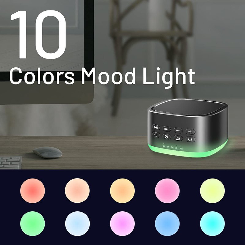 Magicteam White Noise Machine 10 Colors Lights and 25 Soothing Sounds Sleep Sound Machine with 5 Timers with Memory Feature Portable Sound Machine for Baby Adults. (Black)