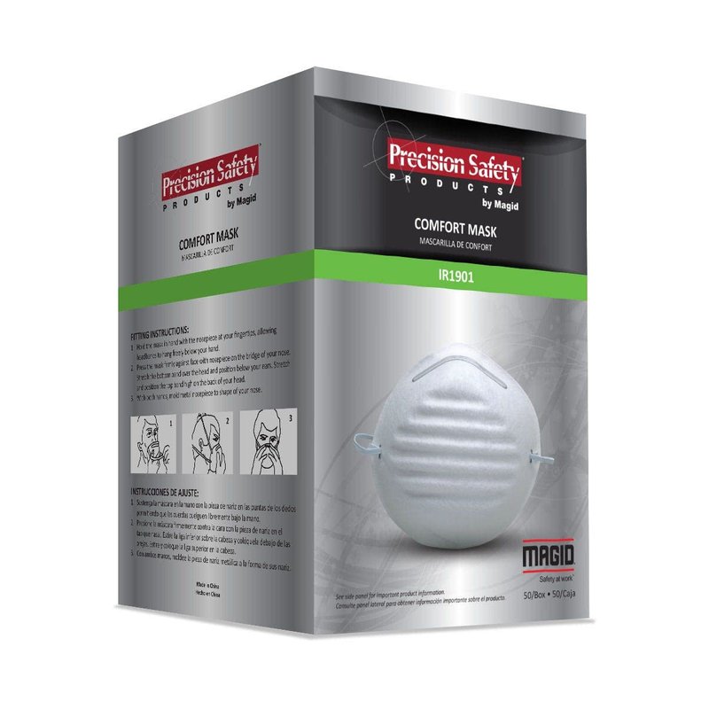 MAGID IR1901 Disposable Masks | Disposable Masks with an Aluminum Adjustable Nose Clip for a Contoured Seal - Great for Household Dust, White (50 Respirators)