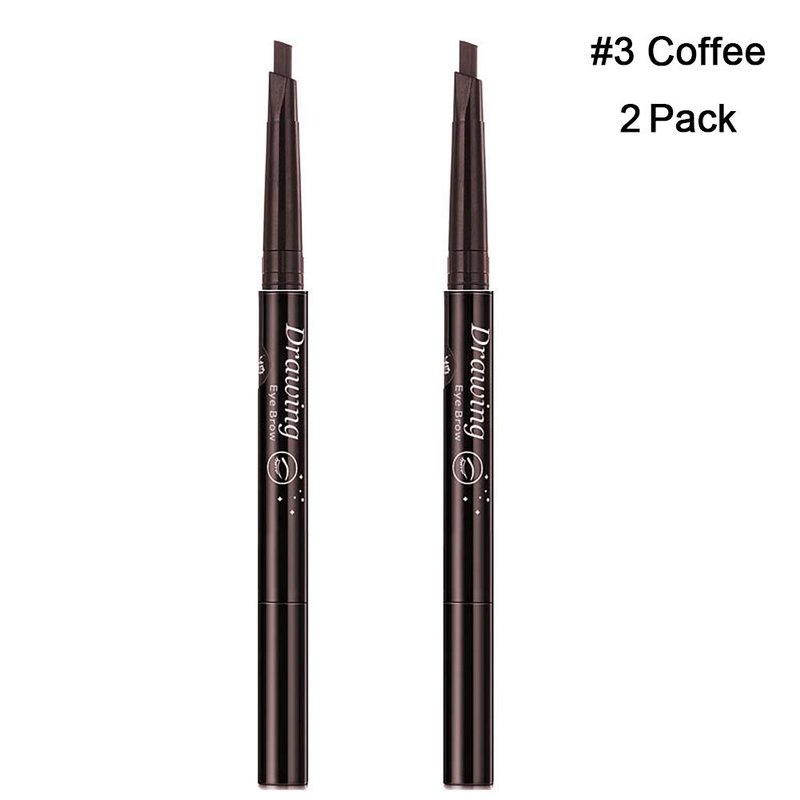 Magik 2 Pack Waterproof Eyebrow Pencil Retractable Slant Tip & Brush Double-ends Natural Hair-like Look (#3 Coffee)