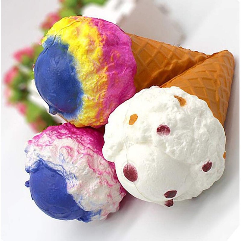 - Multi-colored Big Jumbo Squishies,Ice Cream Cone Squishy Slow Rising Scented Squishies. Environmental protection material: Polyurethane foam (PU foam). Super fun to play with.