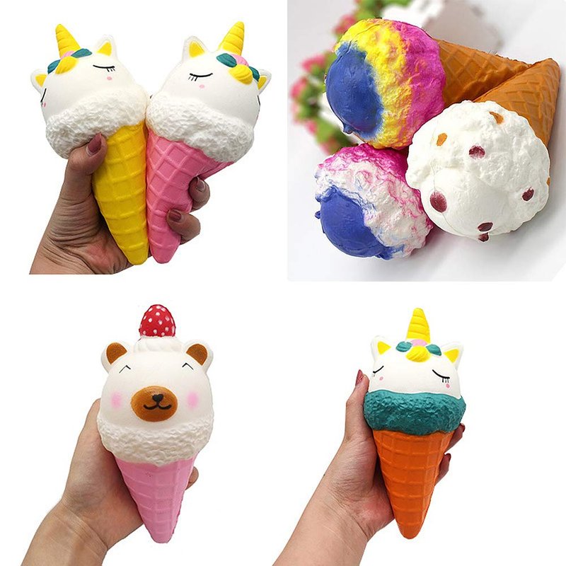 - Multi-colored Big Jumbo Squishies,Ice Cream Cone Squishy Slow Rising Scented Squishies. Environmental protection material: Polyurethane foam (PU foam). Super fun to play with.