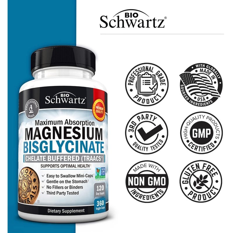 - High Bioavailability: BioSchwartz Maximum Absorption Magnesium Bisglycinate capsules are formulated with Albion TRAACS, a patented form of bioavailable magnesium for maximum absorption