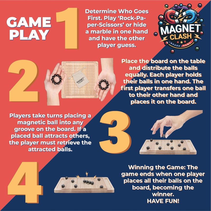 MAGNET CLASH - New 2024 Magnetic Chess Board Game Set with 20 Stones - Educational Strategy & Puzzle Game for Families and Parties, Brain Teaser for Kids & Adults, Ideal Gift