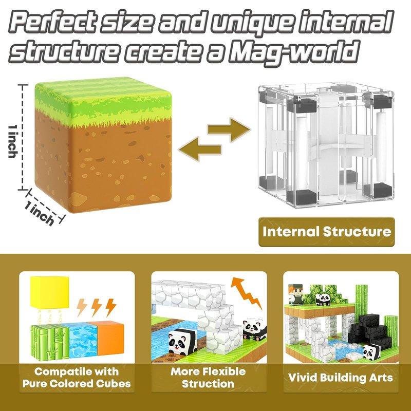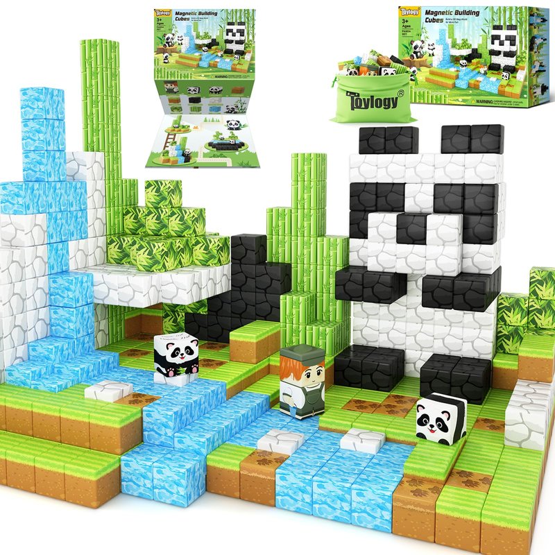 - 【PANDA MINE MAGNET WORLD CUBES】Imagine in a realistic panda park, watching adorable pandas play around you, feeling their warmth. What an exciting and desirable scene! We offer Toylogy magnetic blocks with panda theme, allowing you to build a realistic panda park with your boys or girls in your home! With magnetic toys unique and realistic printing designs, you can build various habitats for pandas, such as bamboo forests, grasslands, and rocky areas, making you feel like you're really in a real panda park.