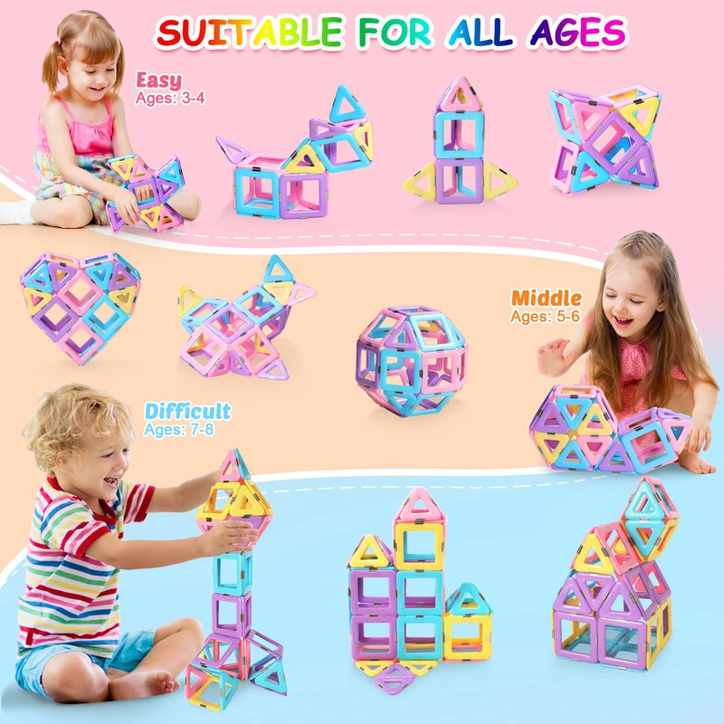 Magnetic Blocks Toys for 3 4 5 7 8+Year Old Boys Girls Upgrade Macaron Magnetic Tiles Set for Kids Age 3-5 STEM Creativity/Educational Building Blocks Toys for Toddlers Children Age 4-8 Birthday Gifts