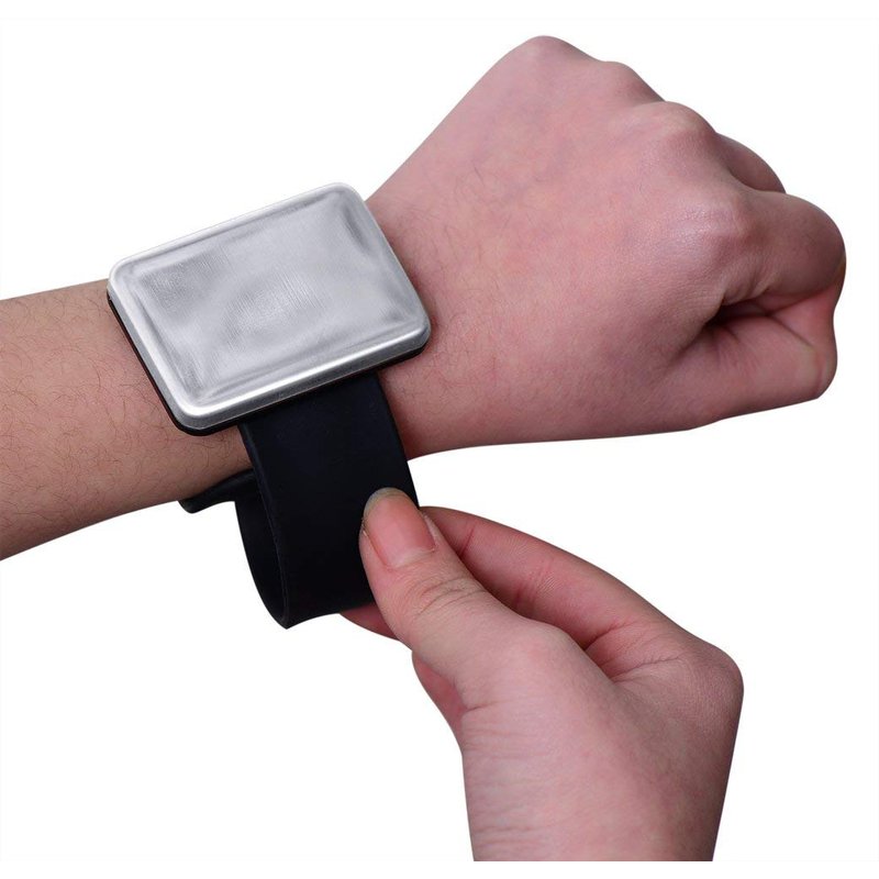 - Magnetic Bobby Pin Bracelet,Featuring a metal face on a rubber wrist band which easily attaches to your wrist with a slap; one-size-fits-all.