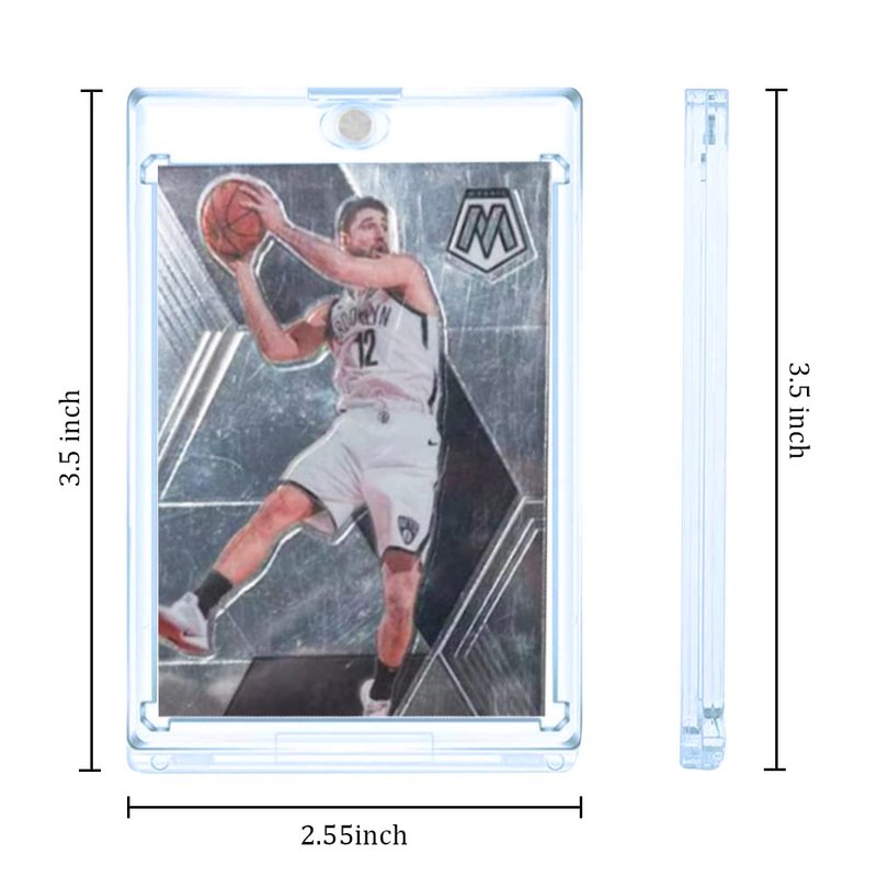 5 Pack of 35pt magnetic card holders, interior dimensions:2.52 x 3.52 x 0.039, exterior dimension:2.87 x 4.33 x 0.32, sized to fit standard size 2.5*3.5 inch sports trading cards or gaming cards.