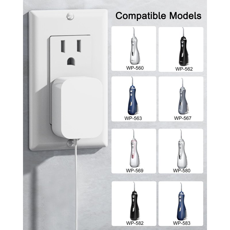 - 【Compatible Models】Replacement for Waterpik charger cord compatible with Waterpik WP-560 WP-562 WP-563 WP-567 WP-569 replacement for Waterpik cordless advanced water flosser power cord
