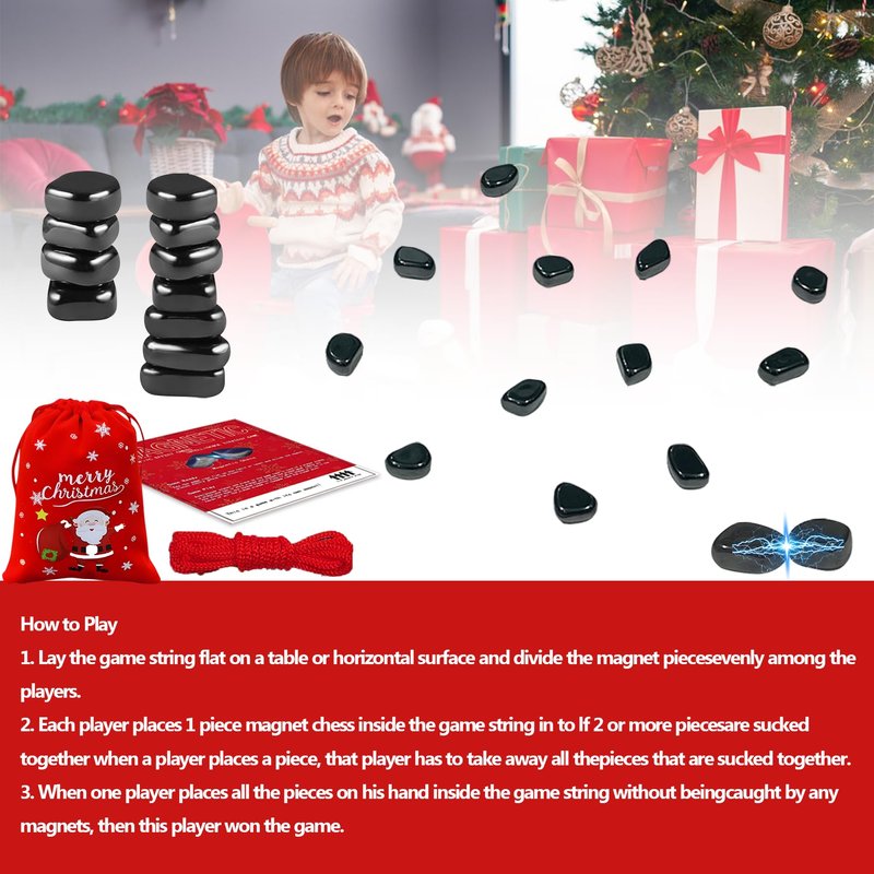 - Magnetic Chess Game: This is a self-absorbing, educational and fun Christmas family board games set for kids and adults.Magnetic chess game with stones is more durable, stronger magnetic, comfortable and smooth, so you can enjoy the fun of the game without worrying about losing or dropping it. No need to worry about losing or dropping the game. Put all the magnetic chess in your hand into the rope circle, no magnetic pieces are sucked together, you win!