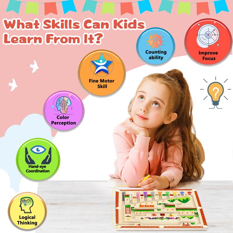 - Valuable Educational Toys: Build color and number recognition skills, practice counting and fine motor skills, and keep toddlers busy for hours with our fun magnetic toys. Children love to sort colors, and the maze keeps them quiet and focused