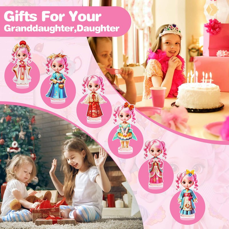 - 👧👗 Paper Doll Product Details - Our magnetic doll dress up kit includes a small paper doll that stands 4.3 inches tall. Each set contains 1 magnetic paper doll, 1 magnetic clothing patch, and an acrylic base stand.