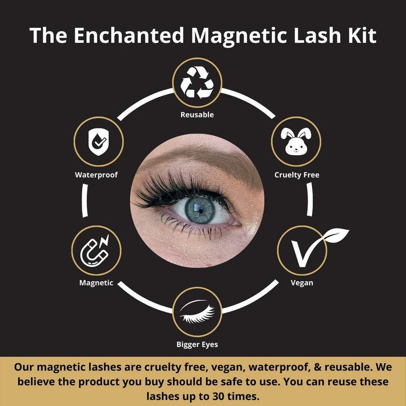 Magnetic Eyelashes and Eyeliner Kit - Enchanted Magnetic Lash in a Set of 3 Natural, Glam, and Dramatic Lashes - Easy Application Tweezers Included