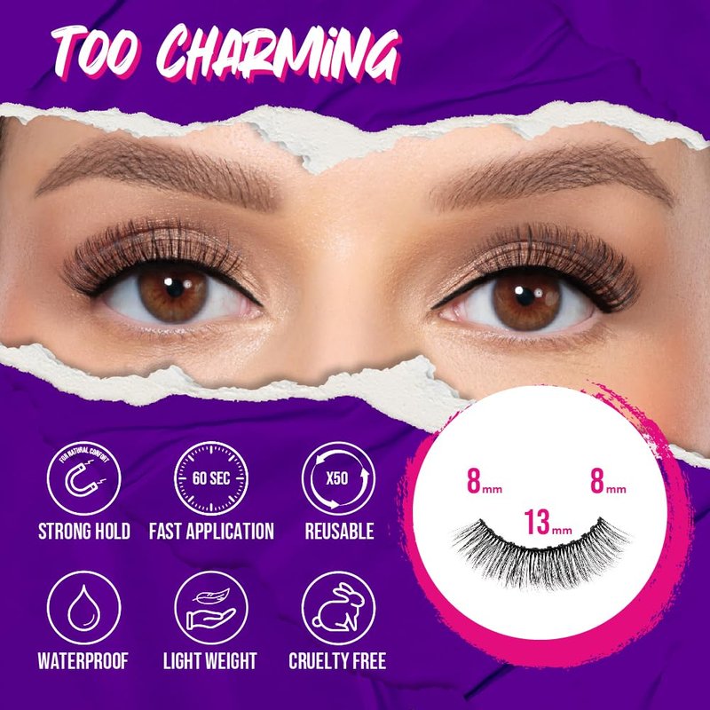 Magnetic Eyelashes | Premium Faux Mink Magnetic Lashes | Comfortable and Easy to use | Universal size |Reusable up to 50 times | Vegan and Cruelty free | Natural Look, 1 Pair (Too Charming)