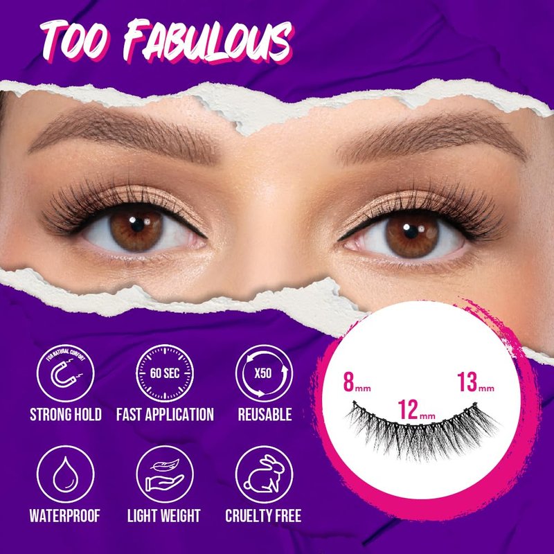 Magnetic Eyelashes | Premium Faux Mink Magnetic Lashes | Comfortable and Easy to use | Universal size |Reusable up to 50 times | Vegan and Cruelty free | Natural Look, 1 Pair (Too Fabulous)