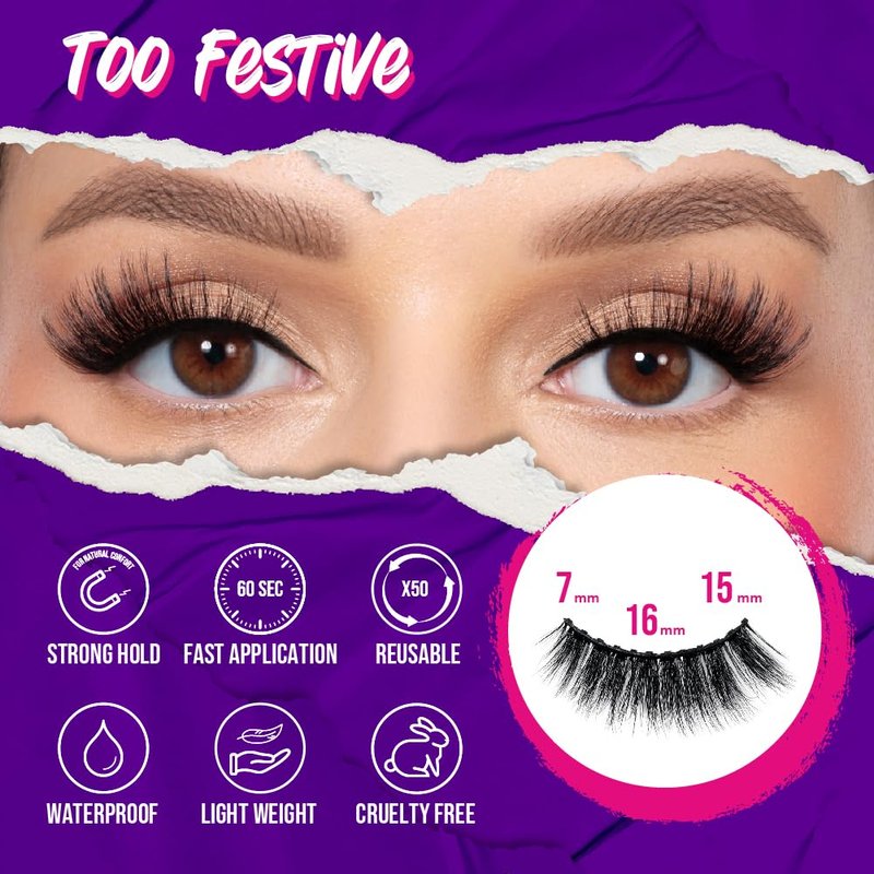 Magnetic Eyelashes | Premium Faux Mink Magnetic Lashes | Comfortable and Easy to use | Universal size |Reusable up to 50 times | Vegan and Cruelty free | Natural Look, 1 Pair (Too Festive)