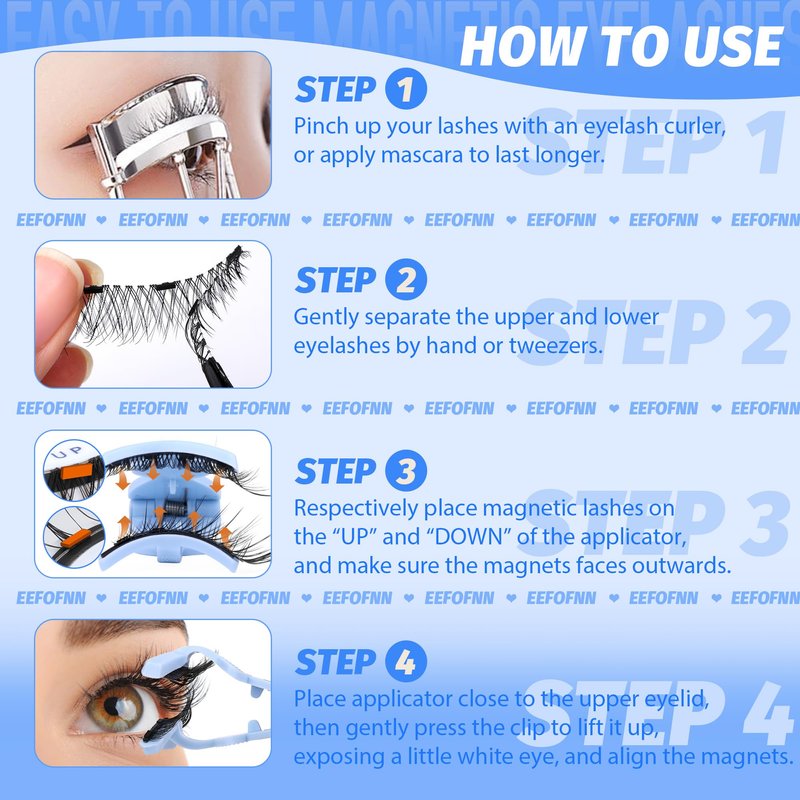 - Eefofnnโs Tips: Magnetic eyelashes without eyeliner are reusable, all-in-one eyelash box helps you store them, which can maintain d curl for multiple uses. If you have any new ideas about magnetic lashes with applicator or strip lashes, please let us know