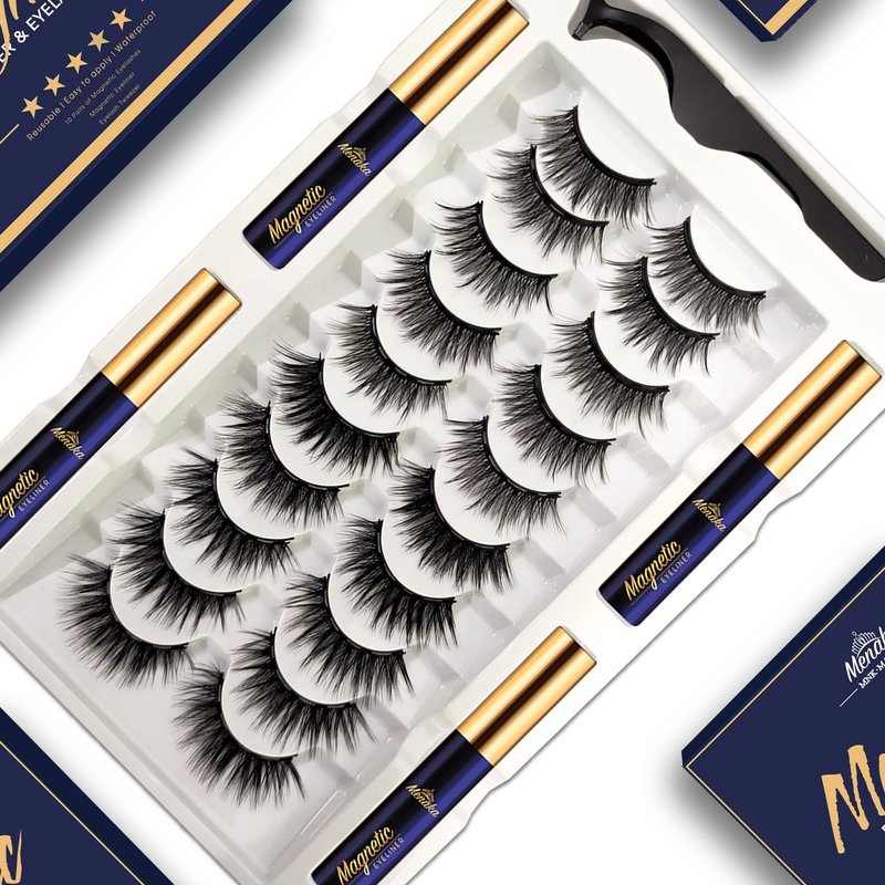 Magnetic Eyelashes with Eyeliner Kit- 10 Pairs Premium 3D Natural Look Reusable Magnetic Lashes with Applicator, 4 Tube Strong Magnetic Eye Liner by Menaka, Easy Magnet Lashes to Apply.