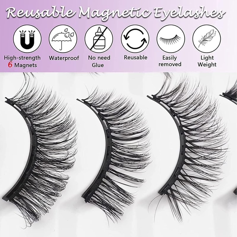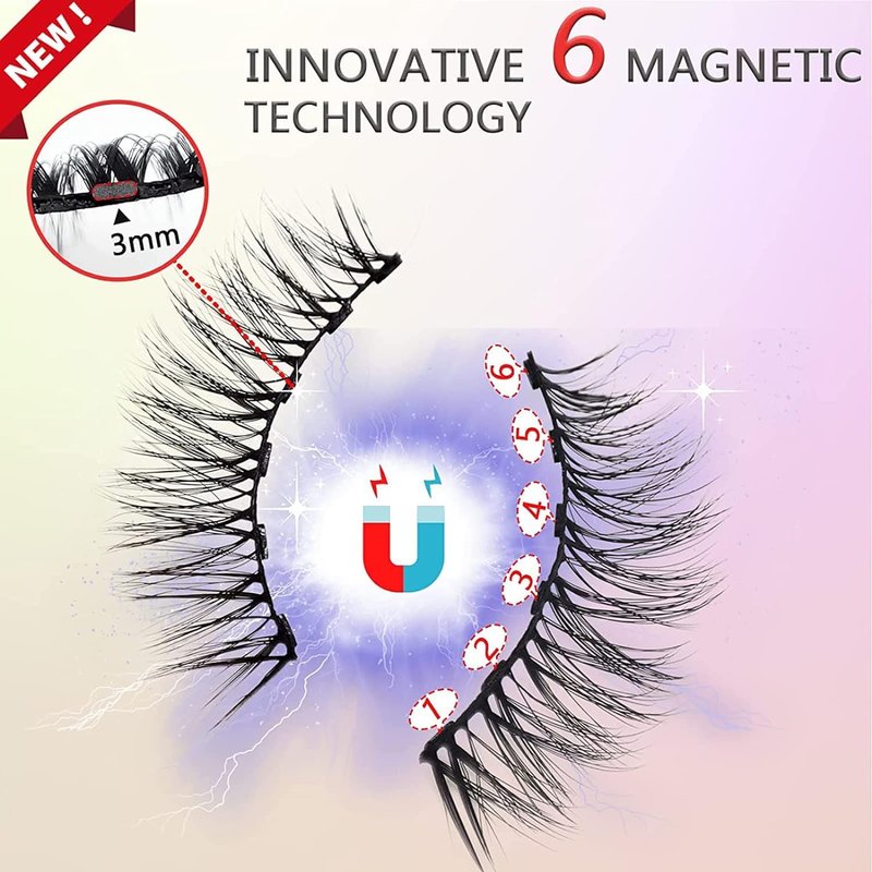- UPGRADED MAGNETIC EYELASHES KIT: TMIELYBS Magnetic lashes adopt the latest design. Each set of lashes magnetic eyelashes is equipped with 6 magnets, the magnetic attraction is increased by 20%, and the eye lashes adhesion is stronger, so that you are not afraid of wind and rain, and no longer have the embarrassment of fake eyelashes falling. All magnets are designed with rounded corners, which is more user-friendly, avoid scratching your skin, and make it more comfortable to wear.