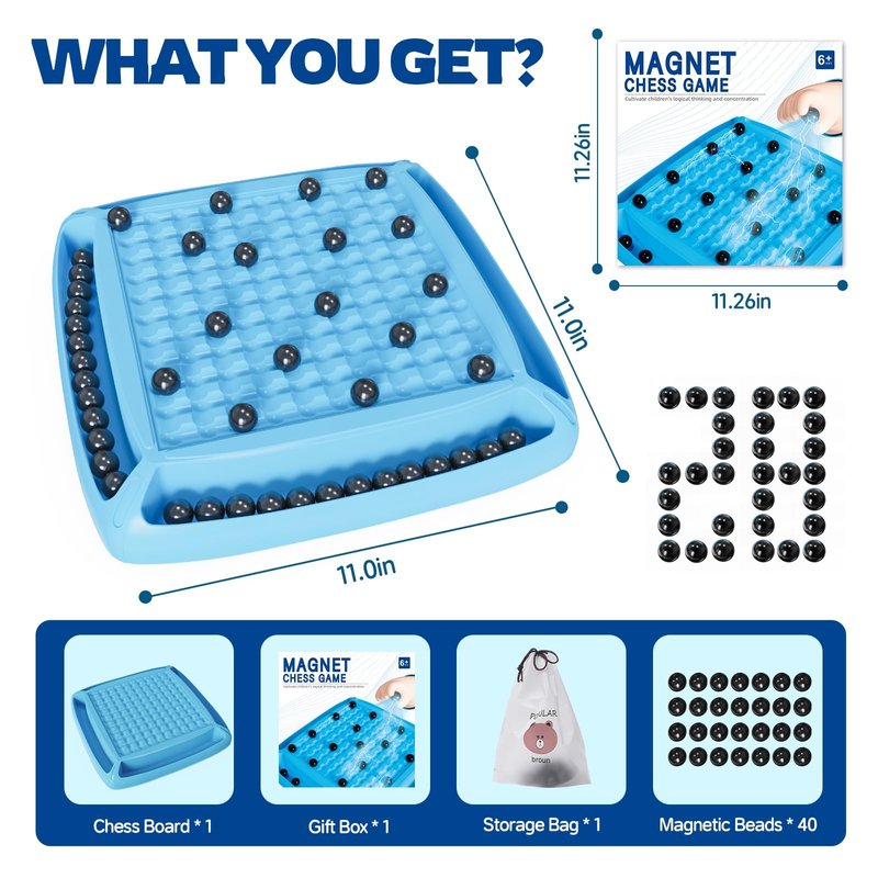 - 【Magnetic Game Chess】:Challenge the forces of nature with magnetic, strategic fun. Strategically position your magnets to avoid attracting other magnets. A game of endless fun.
