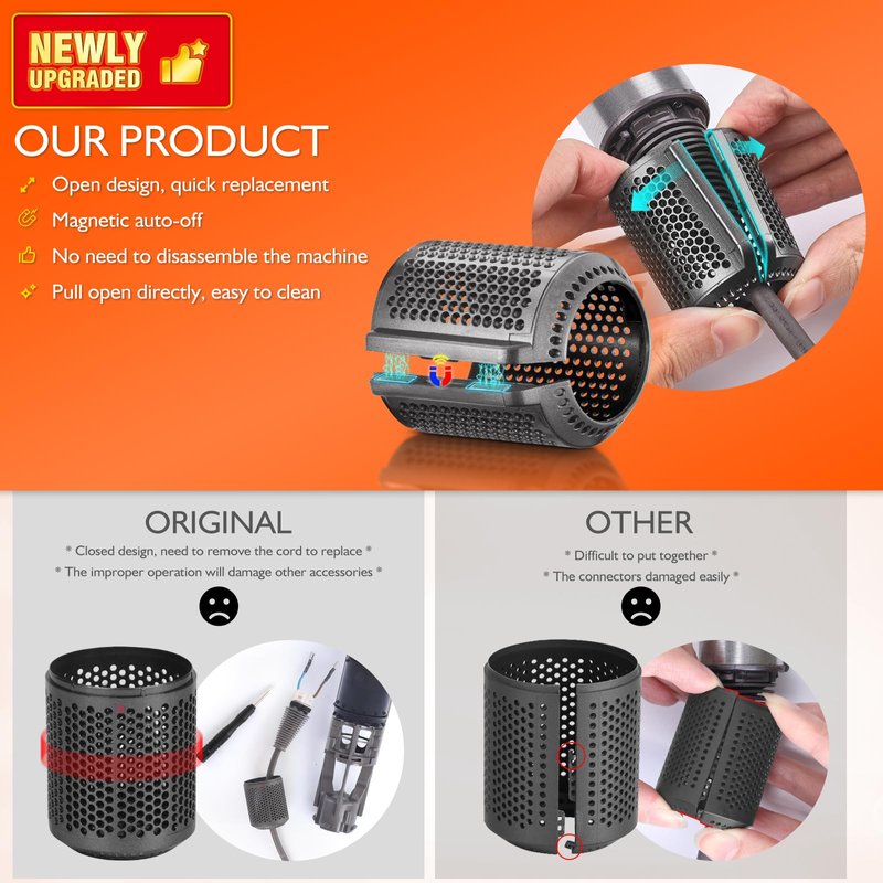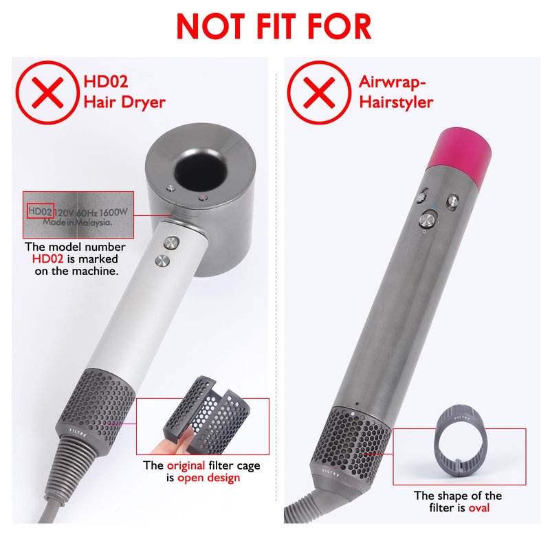 - 🧲[Perfect Compatibility] Use our high-quality magnetic filter cover+ inner filter cage upgrade your hair dryer, replacement for Dyson Supersonic HD01 HD03 HD08 HD15 models hair dryer attachment. NOT compatible with Dyson HD02 and Airwrap.