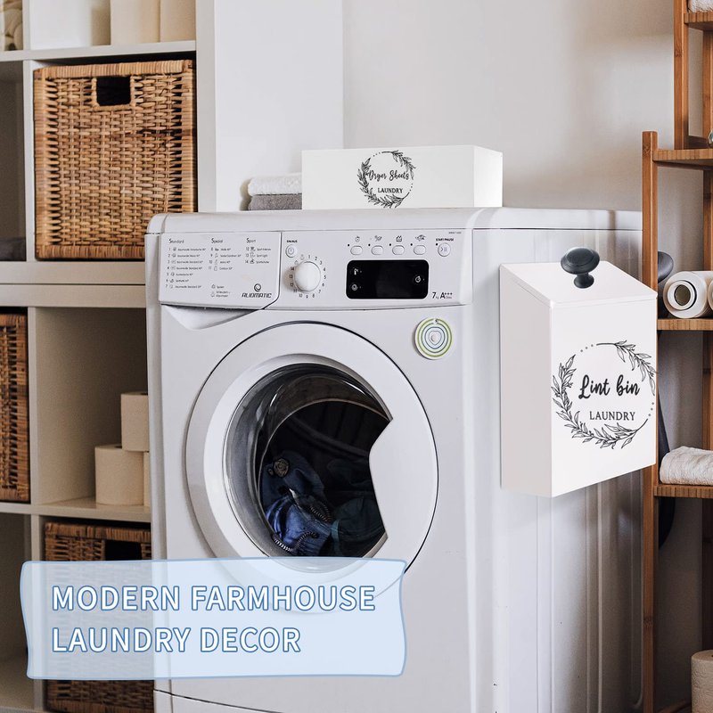 - ✅【Stylish Space-saving Duo】:Stylish magnetic lint trash can with lid and dryer sheet holder set for Laundry room. It is perfect fabric softener dispenser for laundry room with great looking, practical and amazing quality.hook magnets are given to you as a gift.
