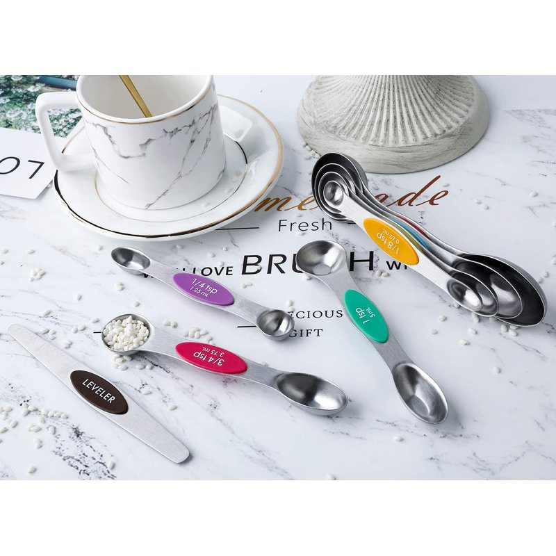 Double head design, can accurately measure liquids, powders, and even solids. Central magnet design for easy storage.And if you have a recipe that calls for the same amount of a dry and a wet ingredient, you can use each end of the spoon.Measure Accurately, Easy Use and Storage, Perfect for Cooking