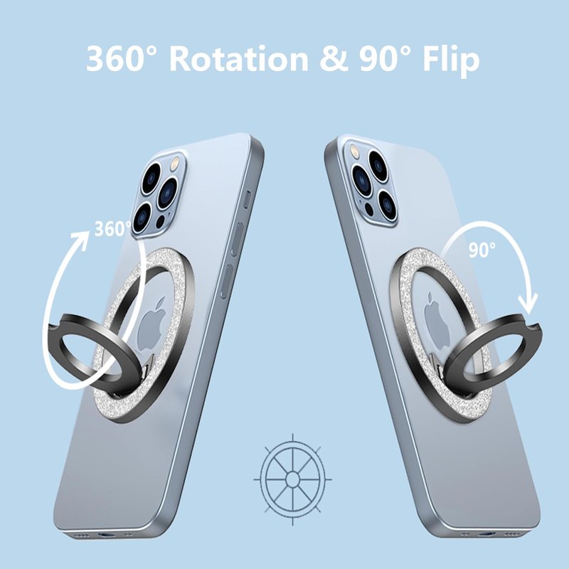 - 【Widely Compatible】The MagSafe phone ring holder Crafted specifically to cater to iPhone MagSafe and certified MagSafe phone cases. The magnetic phone ring grip is also compatible with non-magnetic phones and standard phone cases with thin metal rings (contain in the package) on their backs. Widely compatible with all Apple and Android smartphones, such as iPhone 15/14/13/12 Series, iPhone 11/11Pro/X/XS/XS Max/8/7, Samsung GalaxyS23/S22/S21, Google Pixel P8 P7, ETC.