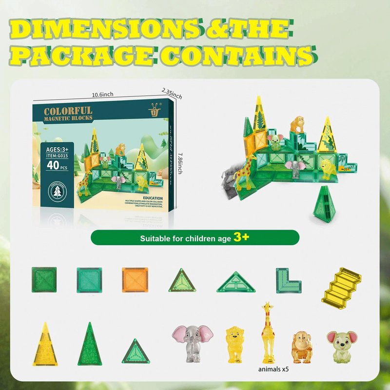 - STEM Animal Cognitive Learning Toy: These magnetic tiles foster creativity and STEM skills, encouraging problem-solving, engineering, and spatial awareness in a fun and engaging way. It can cultivate children's ability to imitate and learn. Kids can also create it yourself, stimulating children's imagination and creativity. Through this toy, Can enhance kid's cognitive ability towards animals and cultivate love. Learn and play at the same time, and gain more knowledge in joyful games.