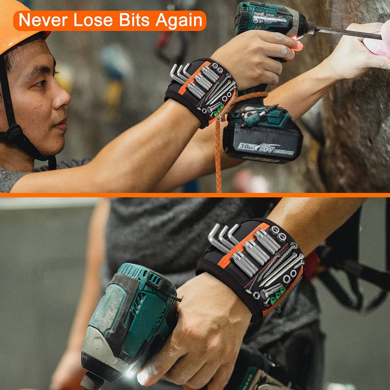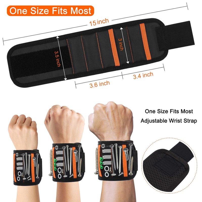 - 【15 Strong Magnets】Embedded with 15 super strong magnets, surround almost entire wrist, best for holding screws, nails, bolts, washers, drill bits. Perfect for home improvement, construction, carpentry, auto repair, sewing, and other DIY projects.