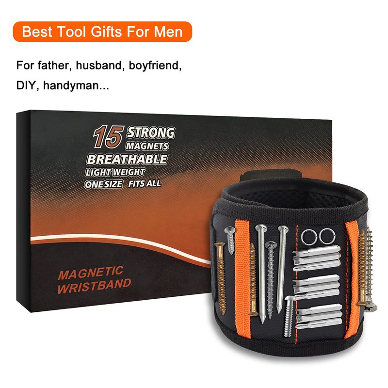 Magnetic Wristband with 15 Strong Magnets, Tool Belt Magnetic Wrist band for Holding Screws, Nails, Drill Bits, Perfect Gifts Gadgets for Men, Father/Dad, Husband and Carpenters