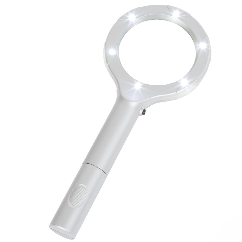Magnifying Glass with LED Light, Lightweight Handheld Lighted 4X Magnifier (Silver) by Stalwart