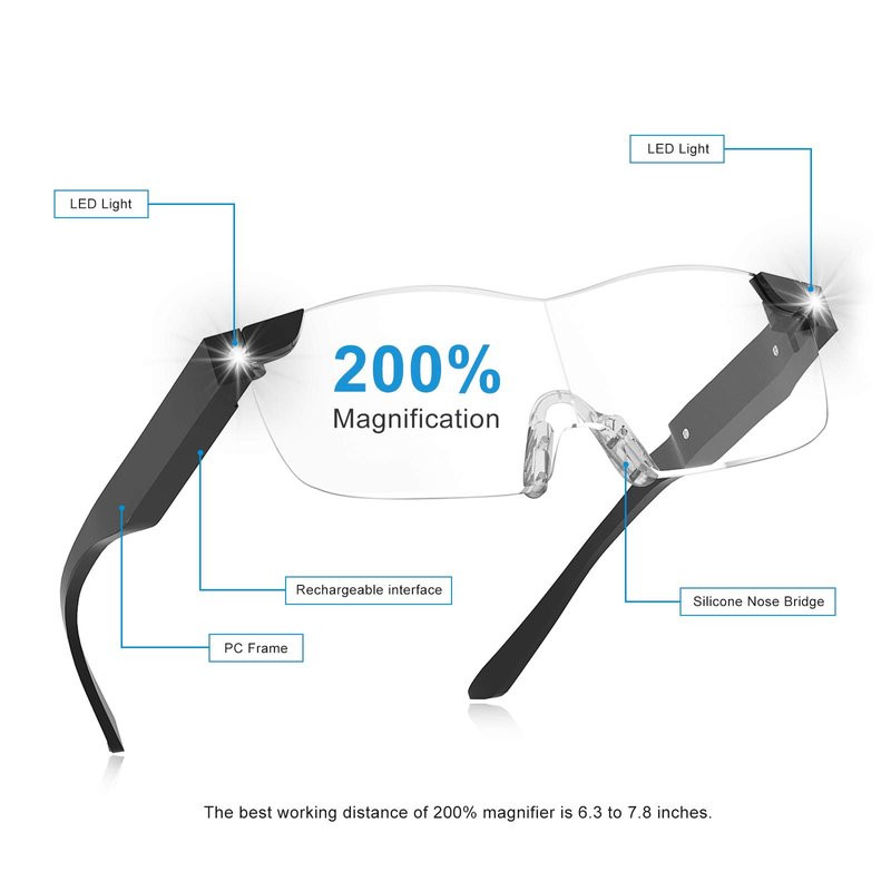 - A 200% magnifying lighted eyeglasses