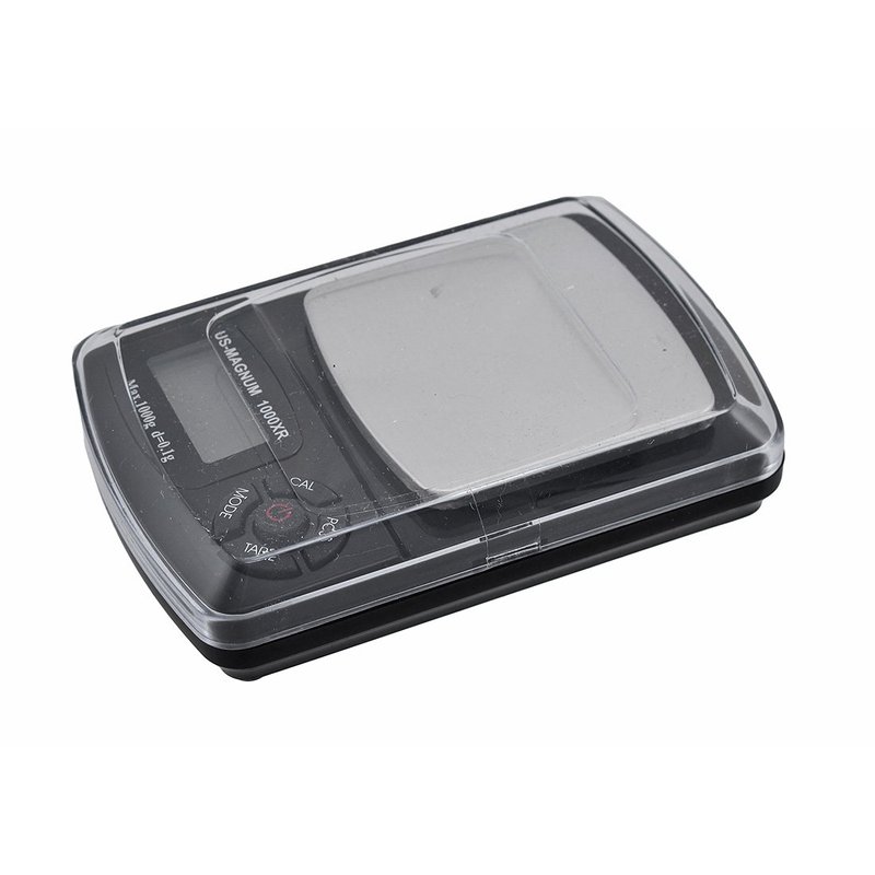 US-Magnum made by US Balance Large capacity 1000g x 0.1g Great for Jewelry, Gold, Gun Powder, Diamonds, Precious Metals...etc Features: * Backlit LCD Display * Stainless Steel Platform * Weighing Tray / Lid * EasyCalTM 1 Button Calibration * Auto Off Feature * Rubberized buttons 6 weighing modes: g,oz,gn,dwt,ozt,ct # 5 Year Warranty Specifications: * Overall Size: 2.875" x 4" x 1" * Platform Size: 2.125" x 2.125" * Capacity: 1000g x 0.1g * Weighing Modes: g, oz, dwt, ozt, gn, ct * Batteries: 2 x AAA (included) * Tare button * Back-lit display * Color: Black * Calibration Mass: 100g * Cover that doubles as a weighing tray (grooved tray stays in place when placed on scale Factory pre-calibrated, so there is no need to calibrate (calibrates with 500 gram weight, not included, sold seperately)