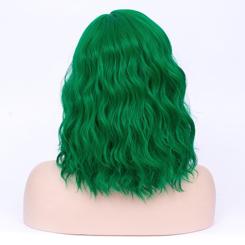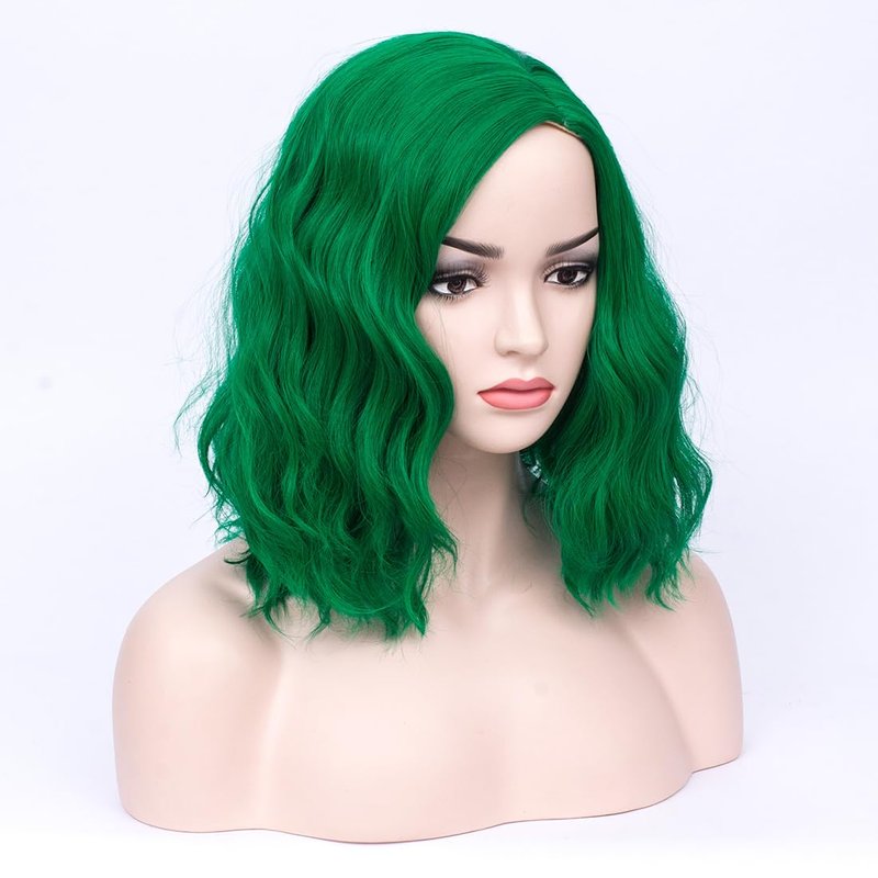 MAGQOO Green Wig for Women Emerald Green Bob Wig Short Curly Wavy Green Wigs Side Part Synthetic Heat Resistant Cosplay Costume Party Wigs (Emerald Green)