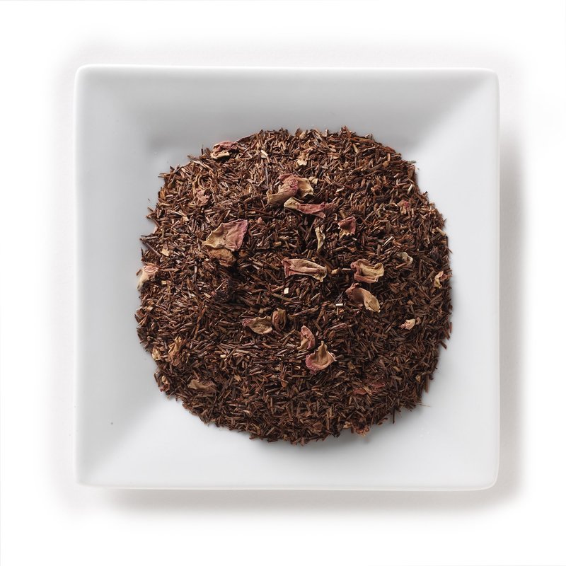 - Rooibos tea, flavoring, freeze-dried whole raspberries, rose petals, vanilla pieces.