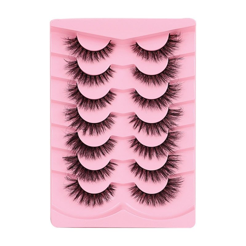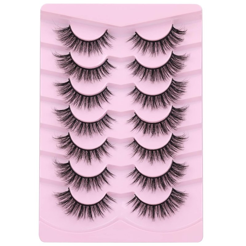 Maigitur Mink Lashes Fluffy 3D False Eyelashes 6-12mm Wispy Cat Eye Lashes that Look Like Extensions Strip Lashes Pack 7 Pairs Lightweight Fake Eyelashes for Doll Eye Makeup LZM-23, PINK