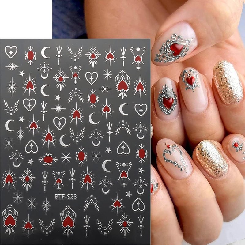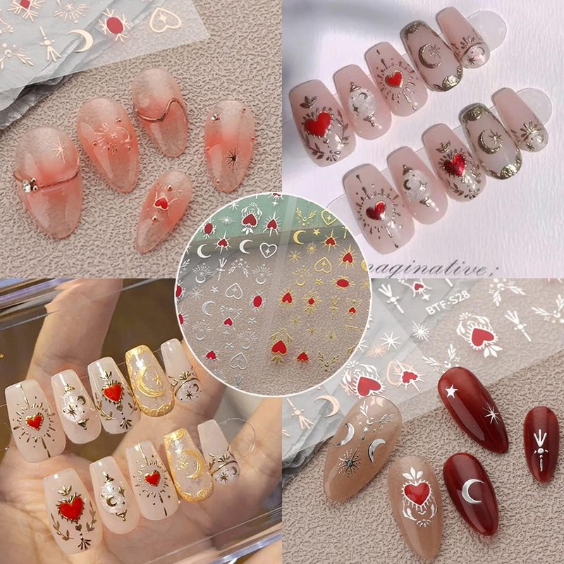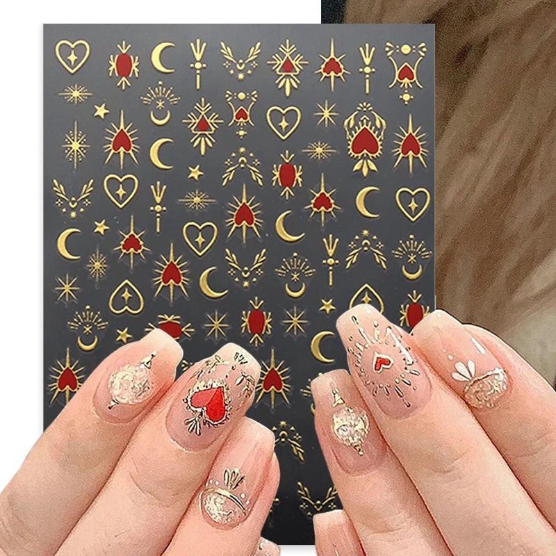 - 【Rich Patterns】These metallic gold nail stickers come in a variety of pattern designs such as stars,moon,hearts ,totem and more.