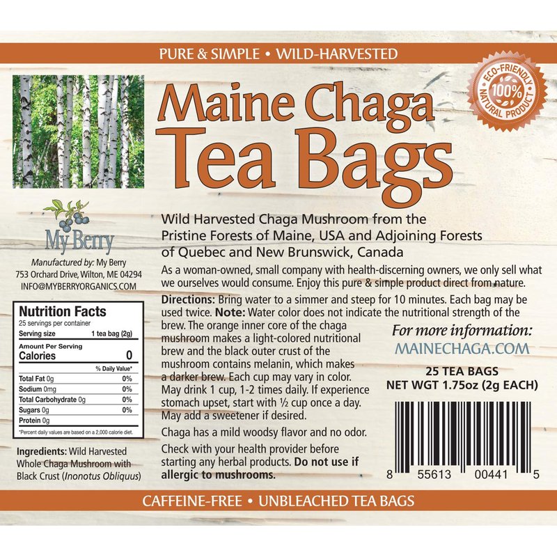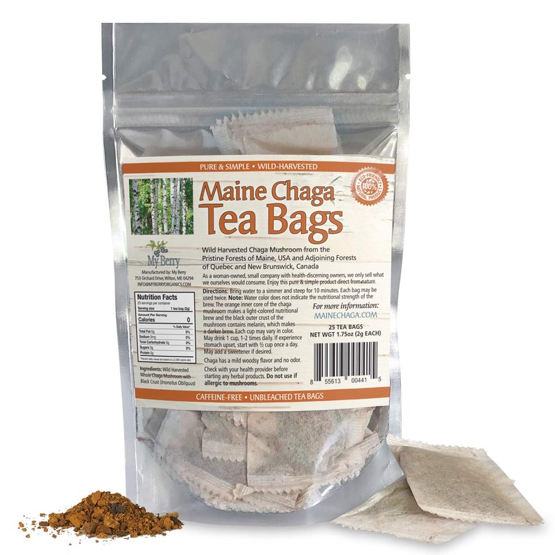 Maine Chaga Tea Bags, Pesticide Free, NOT Imported Chaga, 25 Bleach-Free Bags, USA & Canadian Grown