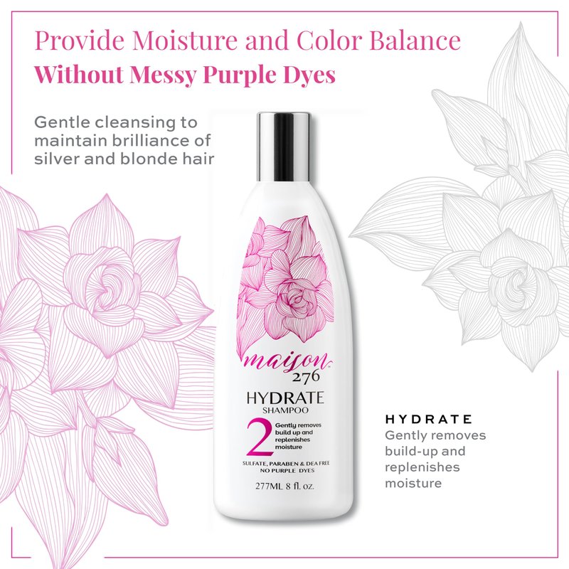 - REVITALIZE SILVER, GRAY & BLONDE HAIR: Maison 276 HYDRATE Shampoo is a gentle cleanser formulated to remove product build-up and replenish moisture, resulting in soft, hydrated and revitalized silver, gray, and blonde hair; Use alone or with 3-Step System